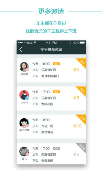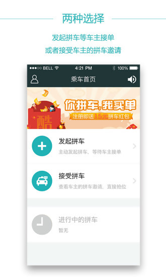 我们为车主和乘客提供了两种体验一致的拼车方式:选择别人的拼车邀请,或者对另一方发起新的拼车。