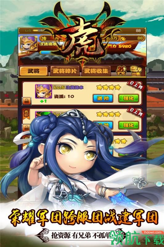 十虎BT版是一款以三国为背景题材的Q版角色扮演手游,游戏突破传统回合卡牌玩法,融合经典的RPG玩法,让玩家可以轻松畅享三国卡牌精彩。该游戏颠覆以往三国认知,采用了回合制玩法,在这里有超多的武将等你来召集,每一名武将都有自己的独特天赋,玩家想要打败敌人就要合理的安排阵容。而且在这里Q萌的三国乱世任你闯荡,百余款三国武将自由收集培养,多样组合搭配随你体验,并拥有独特的天赋资质,打造超强宝物、打造个性技能绝技,让您体验全新特色玩法。同时游戏中拥有细致的卡通画面设计,用卡通风格重塑角色造型,还原历史场景风貌,给你带来全新的视觉体验。你还在等什么呢,如感兴趣的用户欢迎前来WWW.11684.COM下载体验!