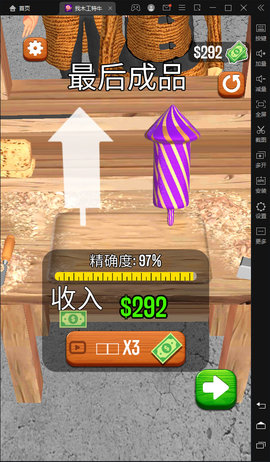 3、将木头雕刻,在这里会有很多不同的要求和关卡,玩家不会感觉到腻歪,因为下一关所面临的雕刻可能是全新的品种,按照每个关卡的要求进行雕刻;