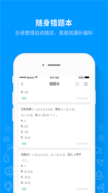5.错题记录,所有错题自动汇类集中,随时随地查看
