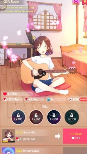 吉他少女是一款休闲放置类养成游戏,这款游戏十分的简单,不需要玩家有多么犀利的操作,玩法十分的简单,十分容易上手游戏中你将和少女一起通过弹吉他来获取好感和收益,并且帮它不止精美的房间,十分独特的装扮系统可以让少女进行风格不同的表演,同时游戏中的音乐也是十分优美,清新唯美的的声音加上甜美的少女,还有比这更惬意的游戏吗,玩家在游戏中的体验将十分的舒适,收集丰富多彩又好看的装扮,随着音乐的开启和吉他女孩的互动,它可以抚慰你的心灵,给你治愈轻松的享受,平时压力大的时候可以玩一下,喜欢这一类游戏的朋友千万不要错过哦,快来WWW.11684.COM 下载吉他少女吧!