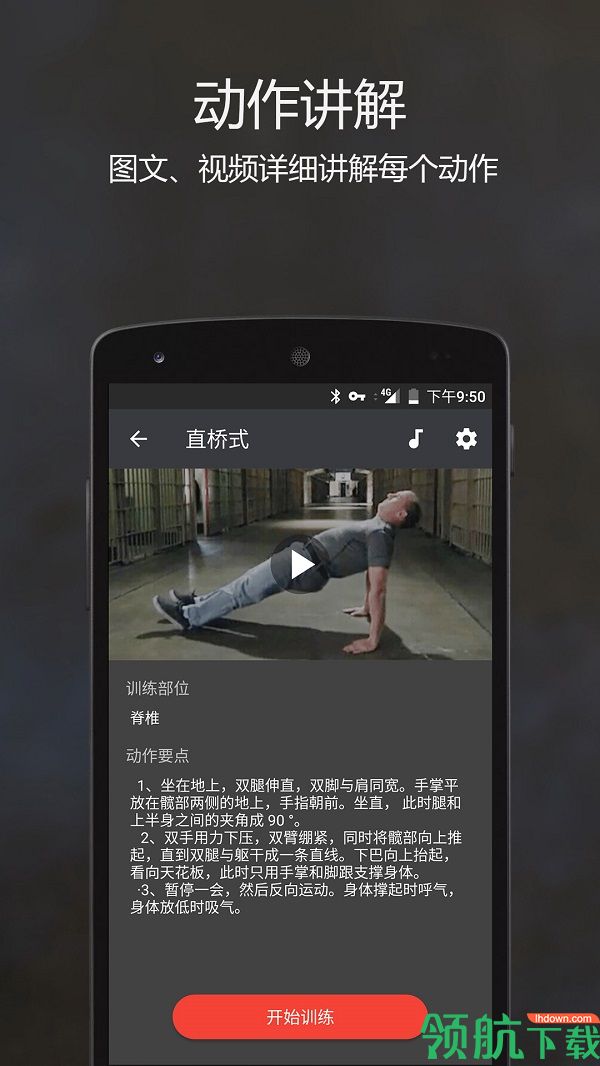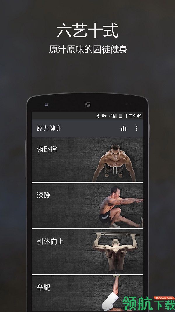 原力囚徒健身app是一款在手机上最受欢迎的健身软件。这里有各种健身教练指导教学,帮助你锻炼、健身,塑性、减脂,保持健康。能够给用户带来轻松积极的锻炼服务,超多的健身方案可供选择随时随地量身定制!只需要一个小房间并且没有器具的支持下就可以实现健身,软件所有动作均有讲解,让你规范动作并且还有语音督促,锻炼出好身材不求人不用花钱。软件界面友好,特别干净,提供囚徒健身视频教程和文字说明动作要点,让您在没有任何器械的家中也能练出实用的力量、极限的力量、生存的力量。它包含六个能锻炼人体各个部位的动作系列:俯卧撑、深蹲、引体向上、举腿、桥、倒立撑(又称为“六艺”),每个系列有10个细分动作(又称为“十式”)。它几乎不需要任何道具就能练就一身强硬的肌肉,无论你身处宿舍还是任何地方都可以开始健身了,无论在度假还是出差都没有任何理由停下健身。