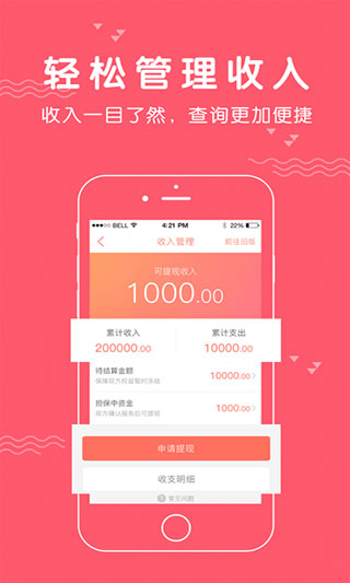 4、收入管理:查看订单收入详情和资金流向,账目管理帮你搞定,账户余额随时提现