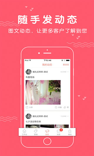 婚礼纪商家版是一款由杭州火烧云科技有限公司婚礼纪官网为商家群体推出的手机婚礼商家店铺综合性互联网管理软件,软件致力于为商家用户提供便捷的管理服务,包括作品管理、订单管理、收入管理、店铺数据以及档期管理等功能。软件内容涵盖婚礼策划、婚纱摄影、摄影师、摄像师、化妆师、主持人、婚品等丰富品类是上万商家的选择。他能帮助商家便捷管理线上店铺,随时随地回复顾客咨询,及时发布各类商品信息,管理用户信息,账单查收等等多方面店铺管理,为自己和用户带来方便,通过婚礼纪商家版就可以将店铺放在口袋里随身携带,从此管理更轻松。有了它,商家们就可以便捷的管理线上店铺,并及时给予顾客回复,给你管理店铺带来了极大的便利。有需要的商家们赶快来WWW.11684.COM 下载试试吧!
