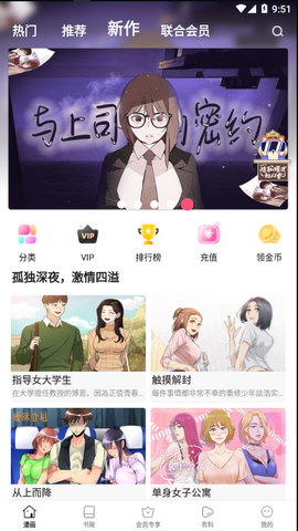 软件风格简洁时尚,专注,轻松上手,让你轻松进入漫画世界!新的书架可以让你轻松管理自己喜爱的书籍,阅读和追逐新的不再繁琐。