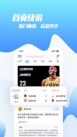 猫体体育app是体育爱好者互动交流,观看体育赛事直播的赛事资讯平台。NBA、英超、西甲、欧冠、意甲、CBA和其它篮球比赛直播无需到处找。