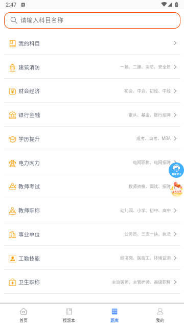 这个软件的操作非常的简单方便,而且为用户提供的各种学习资料全都是免费的,你可以自由的下载下来,而且还有专门的题库提供给你,你也可以在上面做题,提高学习能力。