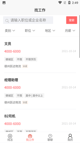 所有工作信息都由服务管理。用户可以使用软件查找各种工作内容,如it行业、销售行业、蓝领等。