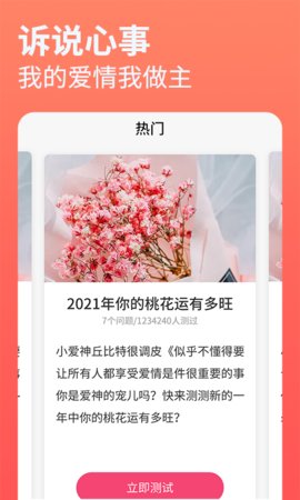 伊恋测试是一款正经的能够测试你的爱情运势的手机app,使用这款软件可以详细的了解自己当日运气和以后的爱情走势,有兴趣的朋友赶快下载不要错过哦。