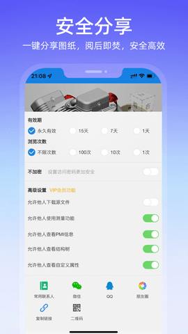 2、【随心所欲的分享】可以通过微信、邮箱、QQ等社交工具,向同事及好友手机分享DWG图纸、Revit模型