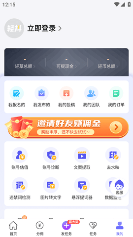 轻抖app是一款短视频社交软件,可以赚钱,内含专业个性化的数据分析工具,轻抖软件可以助力短视频创作者打造出用户喜欢的高价值内容,让你快人一步获取收益,还等什么,下载试试吧!