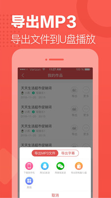 3、同步导出mp3和歌词文件,多平台分享微信朋友圈和好友。