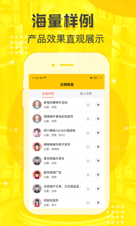 2、真人示例成品:海量真人示例成品,直接导出MP3,多样风格,拯救各种程度懒癌患者;