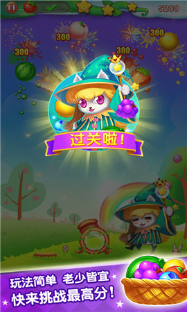 《水果泡泡传奇》是一款可爱的新策略休闲游戏。在五颜六色的水果泡泡群里,我们和小巫婆安吉拉并肩战斗。和她一起营救被困的小猫,一起抓住水果上的七星瓢虫,一起收集星光。组合会有意想不到的道具奖励,让您轻松完美过关,尽快加入我们!让你的手指抽出你的智慧,在水果泡泡之旅中散散步。
