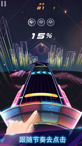 2.超震撼的视觉效果,每首歌都配置了不同风格的场景,背景音浪与玩家操作完美互动,再搭配过山车式的轨道,拥有超强代入感.