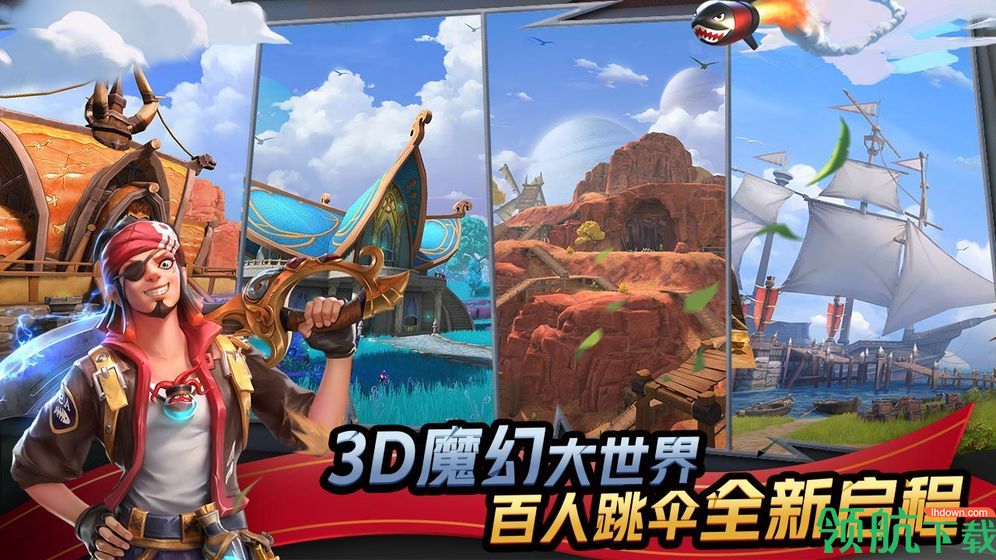百人空降,启程探索全新3D魔幻大世界,电影级画面品质,多种地形植被系统呈现,拥有仙人掌、棕榈树的兽族热带沙漠,充满树木丛林的人族绿色森林,具有魔幻紫色树的精灵高山寒地!指尖顶级视觉体验!百人跳伞争霸,决战魔性大陆天命圈!