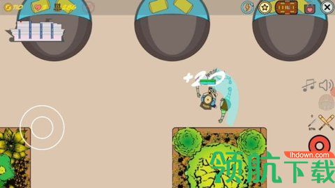 玩家可以通过防御僵尸来赚取金币。僵尸具有不同的强度,速度和寿命,因此每种类型的僵尸都会产生不同数量的硬币。玩家可以从自卫开始,使用空手道击中僵尸,但它需要更多的精力,而且效能较低。