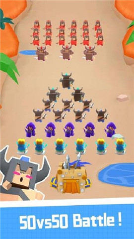 像实时战争一样战斗。从所有类型的军队中选择最佳比赛并实时战斗。通过合并相同级别的士兵进行升级,或者只是闲置并等待直到重新打开。