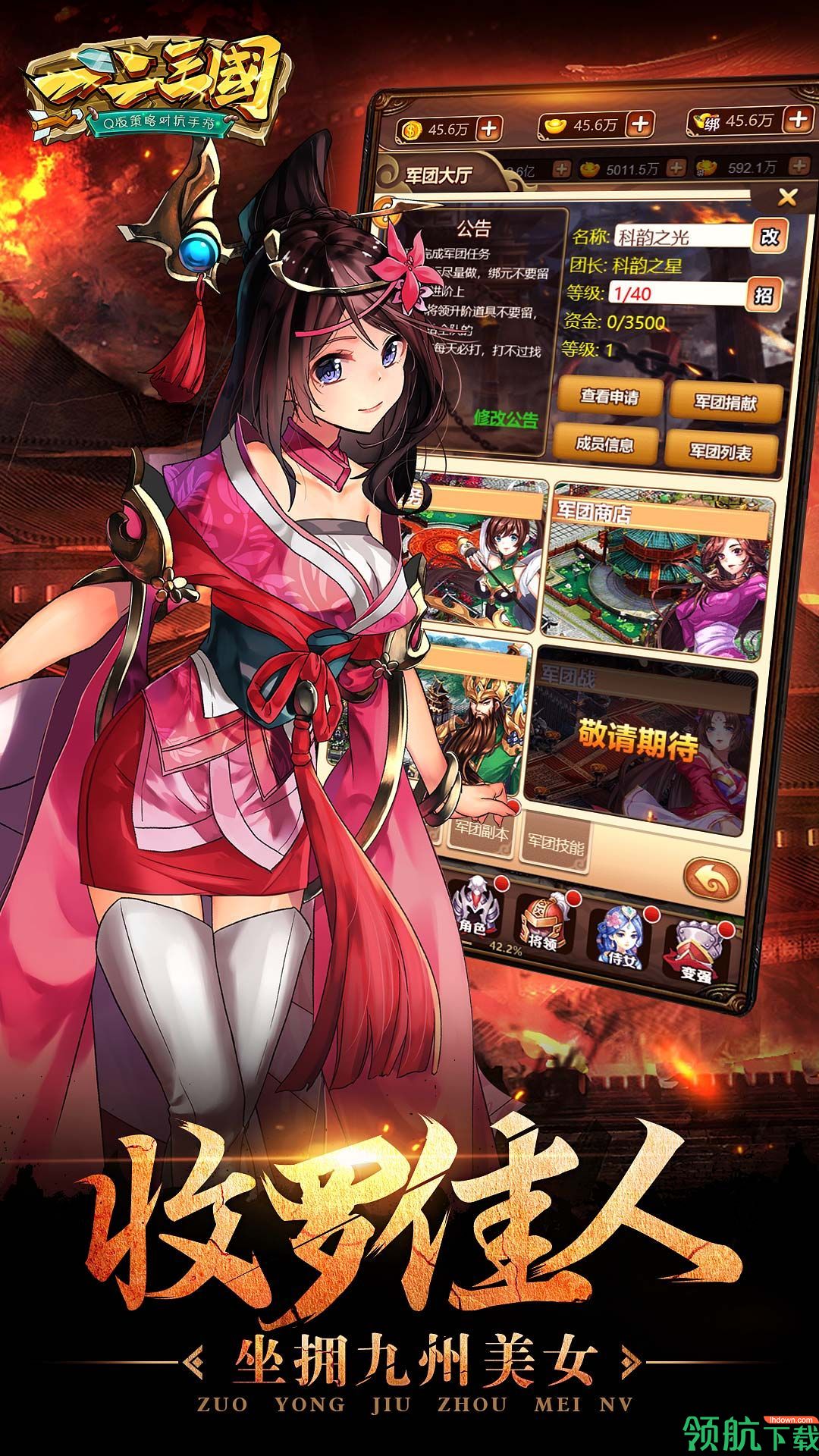 可以获得各种传奇名将,无论你喜欢“魏蜀吴”哪个武将都可以招募到。
