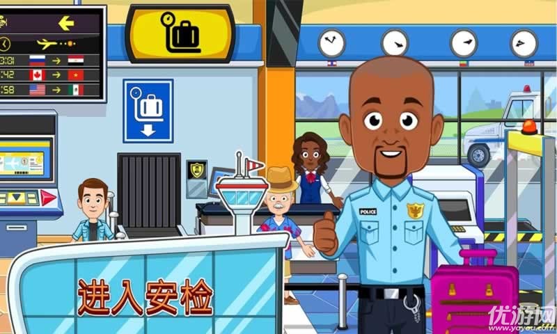 开启中国新征程!买一张票,得到一个惊喜!你有头等舱的座位!如果你是一个特殊的人,机长甚至会邀请你进入驾驶舱!什么!机长想教你怎么驾驶飞机?哇,太棒了!也许你可以在安检前去免税店看看!有九个新的地点可以探索!有购物商店,机场候机大厅等等!你可以添加新的衣服或新的角色到你当前的我的城市游戏!