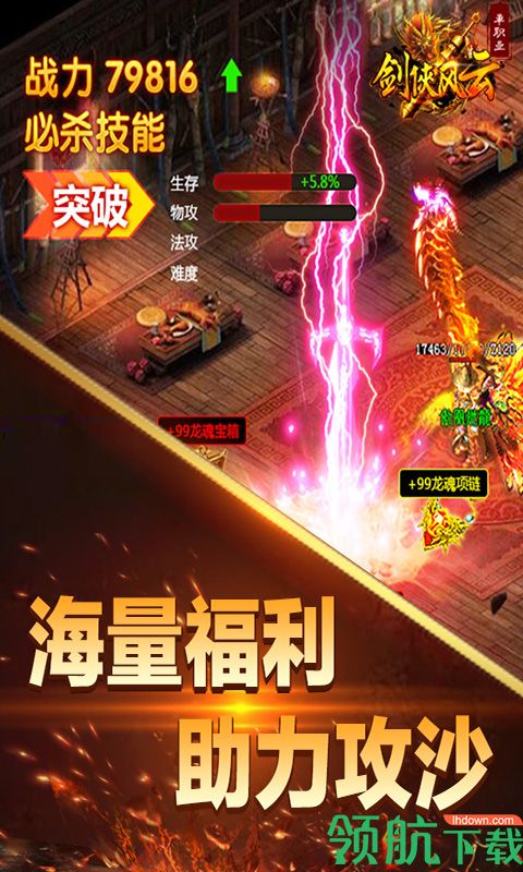剑侠风云是一款传奇类型的角色扮演优势,玩家可在这里随意刷怪,怪物等级越高掉落的装备就会越好,精彩的游戏画面,和独特的游戏特效,欢迎下载体验。