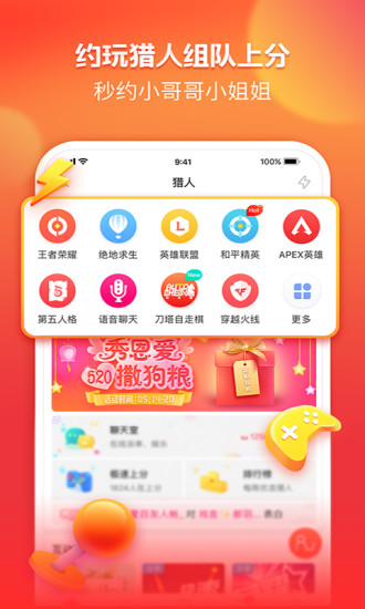 【上分有大腿】猎游,汇聚诸多优秀游戏玩家,覆盖时下热门游戏,王者、吃鸡、LOL……想找个大腿,轻松上分,享受躺赢级游戏体验,来猎游就对了!