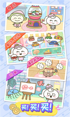 通过观察宠物的需求,主人给予不同的照顾,使其顺利进化成熟,然后与其他主人或npc结婚,延续下一代。在游戏中,会有不同的NPC拜访主人。业主也可以参观不同的NPC在不同的场景。不同的场景有不同的功能。例如,海滩探险可以挖掘化石,海滩商店可以识别化石,农场可以种植花卉或树木,农场商店可以回收农产品,宠物园可以在后院购买宠物饲料,在家的后院放置玩具和饲料可以吸引不同的小宠物。在镇上的游戏商店里,你可以买到不同的玩具和衣服、配饰、壁纸、装扮人物和装扮家居。当宠物玩不同的玩具,他们会有不同的情节。每只宠物都有自己喜欢或不喜欢的玩具和食物。不同的照顾最终会演变成不同的宠物。