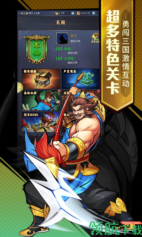 IGS正版IP授权动作手游《三国战纪2》,经典即将回归。赤壁战火宣告魏蜀吴三国争霸揭开序幕!关羽、张飞、赵云、诸葛亮等全部武将任你操控,张陵剑、天师符等全部经典道具随意施放。您还可以邀请好友组队闯关、实时切磋对战。更有规模宏大的军团战,和志同道合的战友们在三国的乱世中闯出一片天下!