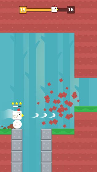 2.游戏中你可以点击屏幕使小鸟下蛋来让小鸟位置升高,利用高度来翻过山川、悬崖等障碍物。