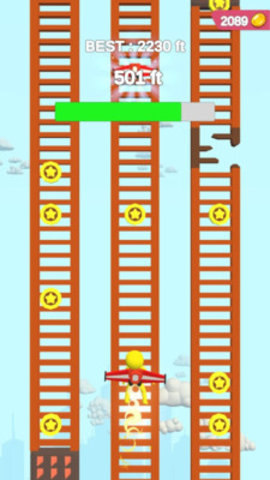 1、卡通风格的画面呢让游戏看起来更加的有趣,爬梯玩法一直不断的前进吧。