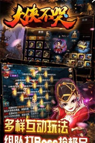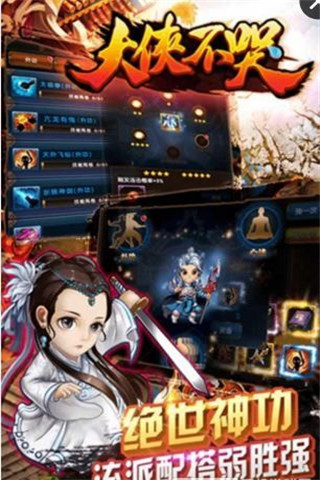 1.大侠不哭是一款Q萌武侠养成手游,丰富的玩法精彩融合体验。