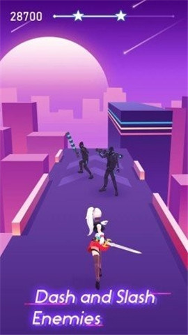 跳舞狩猎是一款有趣的音乐跑酷战斗手游,游戏中玩家扮演的是一个拿剑奔跑的女侠,每一个关卡都会有不同数量的黑衣人阻挡前方道路,玩家只有打败他们才能前行,喜欢的玩家赶紧下载吧!