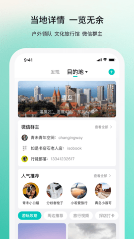 特色体验:可以预订线路商品,可以将旅行消费记账,可以获得目的地跟旅行有关的各类信息排行等。