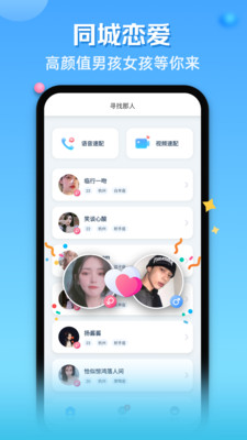 那人社交是一款非常简单好用的手机在线社交交友软件,在这里你可以很轻松的找到你心仪的对象,提供丰富的匹配模式,随时随地都可以很轻松的交友,欢迎下载!
