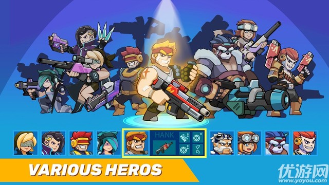 3、在不同的英雄中扮演角色,例如弓箭手,轰炸机,枪手,狙击手,金属战士。
