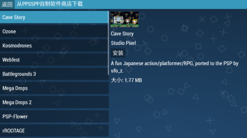 基于ppsspp改进优化后的模拟器工具,可以流畅运行网上所有psp游戏(rom资源),作者也参考了时下较为流行的模拟器工具(诸如小鸡、nes等模拟器工具),基本可以流程运行大型游戏,例如怪物猎人、最终幻想等游戏;此款仅仅是工具,不侵犯任何版权,如果需要体验游戏,请自行去网上找rom资源,但希望大家尊重任何一款游戏的版权,不要传播盗版!