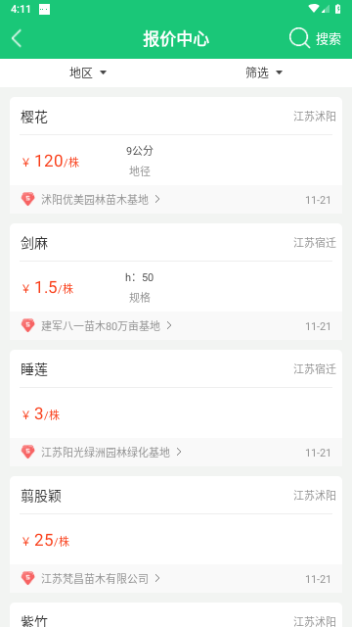 用户可以在应用中查看附近的各种苗木商铺,了解商铺具体位置,方便购买;