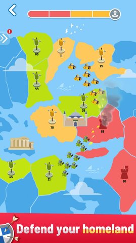 1、有趣的游戏玩法,在游戏开始时,您可以获得小单位,通过占领扩大您的部队,选择进攻目标,聚集部队的力量以占领更多领土,最终获胜!