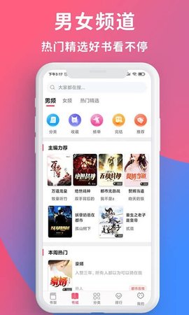 包含全民推荐、女生必看、男生必看、女生专辑、男生专辑、今日流行等全方位的满足你的阅读需求!