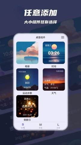 万物小组件还包括相册桌面小部件、时间桌面小部件、天气桌面小部件等;