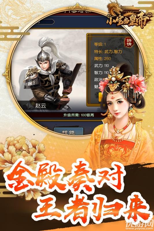 小宝当皇帝是一款原创角色开发的官方手机游戏。取而代之的是小宝的生动表现。它拥有官方推广、门客入场、联盟霸权、家庭PK、多人社交网络、抵御外敌等精彩玩法。在游戏中,鲁丁集的人性化设计被高度还原。在中世纪的四位奸臣中,有叛徒奥白,他们低头成为大臣。官场之旅就像一场戏剧,一步一步,如果官场上的肉很强,看看你能否创建自己的天地联盟。许多古往今来的圣人都被征召入伍。在帮主陈金南的帮助下,我们可以帮你在官道上斩荆棘,展现你的实力!江山如画,美人如玉。没有双儿