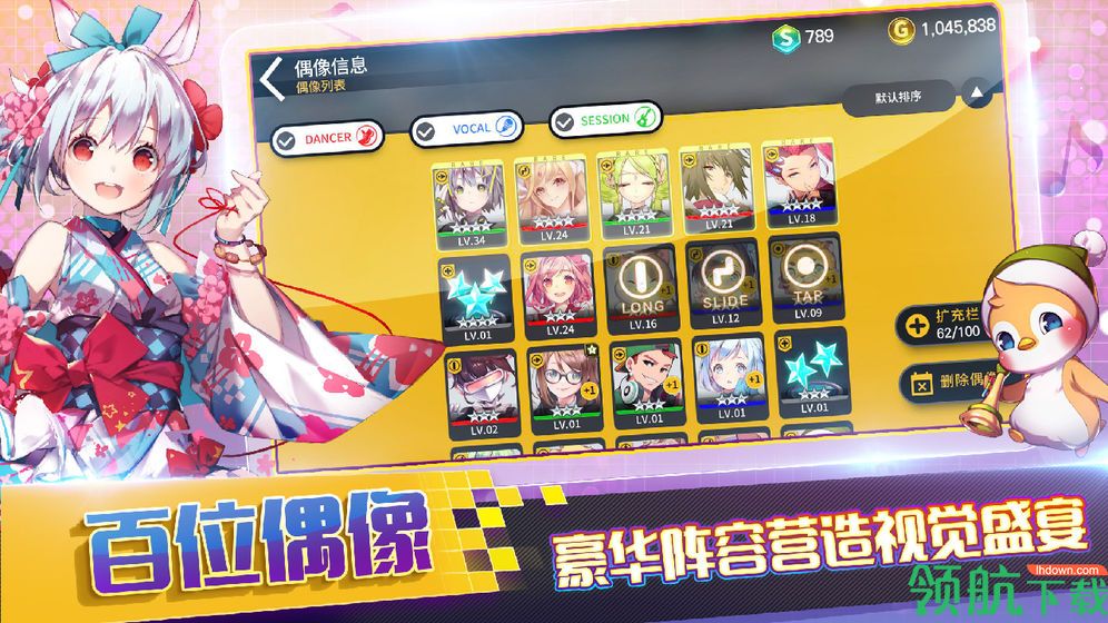 五个种族数百位练习生,专属偶像技能队长应援技能,悉心搭配打造属于你自己的偶像团体。