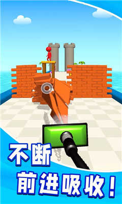 你将操控一台大型的吸尘器,吸纳所有挡在你面前的物体和敌人,如果没有及时吸收障碍,将会被撞击导致失败。当你到达终点线时,尽情的释放吧!发射所有吸尘器内的物体,打败眼前的城堡或敌人吧!