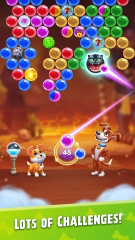 泡泡杀手王游戏是一款超欢乐的射击消除闯关游戏,游戏玩法简单,轻松的点击就能完成一系列消除任务,游戏中还有各种有趣的活动提供,可以免费领养自己喜欢的宠物,宠物可以帮你快速装满子弹哦。