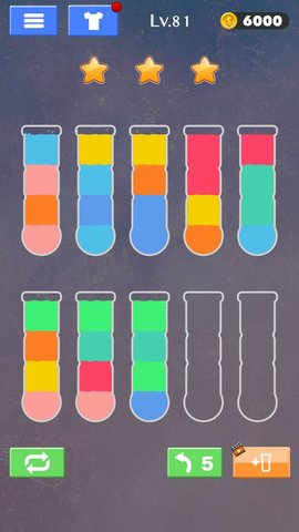 倒水我最溜是一款休闲益智小游戏。游戏关卡丰富,操作简单。在游戏中,玩家只需要用不同的试管,将相同颜色的水倒入到同一个瓶子中就可以通过关卡。