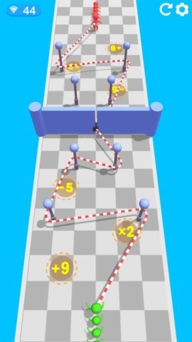 操纵橡胶人在赛道上进行有趣的跑步挑战,灵活避开各种危险障碍,并用绳子控制人群不断向前移动,完成任务挑战。丰富的内容是非常可玩的。卡通3D图片为您带来更多乐趣。使用策略更快地完成任务。完成任务后,将获得丰厚的奖励。您还可以使用道具帮助您不断拉动绳子,获得人数