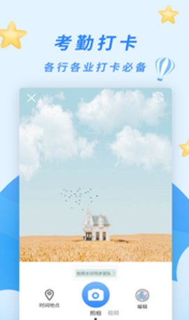 自动添加时间地点,考勤打卡、工作记录专属模板、自定义水印内容、编辑工作内容等;