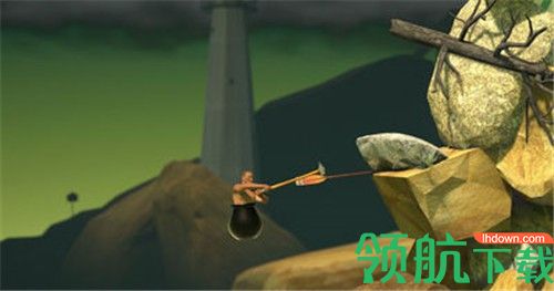 1、玩家控制一个坐在似乎是缸里的人,用一把榔头不断往上爬,操作极其简单;