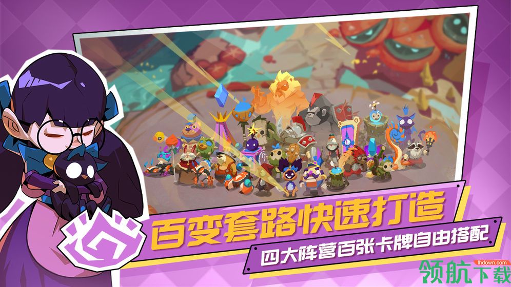 一款卡通风格的卡牌策略游戏,游戏为玩家提供了丰富的卡牌,根据卡牌可搭配出不同的阵容效果,快节奏的即时战略,精彩的对战
