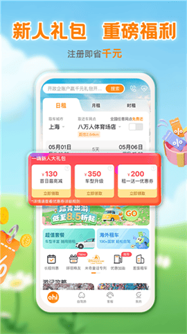 1、【新人礼包】新人注册,可获赠价值300元的普通租车优惠券。